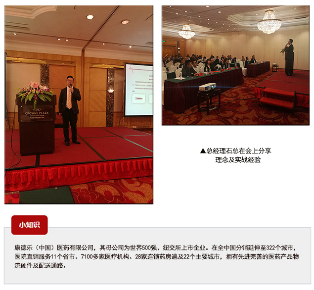 會上,我司總經理石磊對即將落地的新業務模式的目的和意義作了充分闡述,并分享了理念及實戰經驗,并宣布與康德樂(四川/重慶)醫藥有限公司達成合作意向,委托其在上述區域獨家開展速豐?銷售終端配送服務。這次與康德樂公司達成合作,也是我司借助新平臺的優勢,共同推進醫療流通領域改革轉型的一大壯舉。