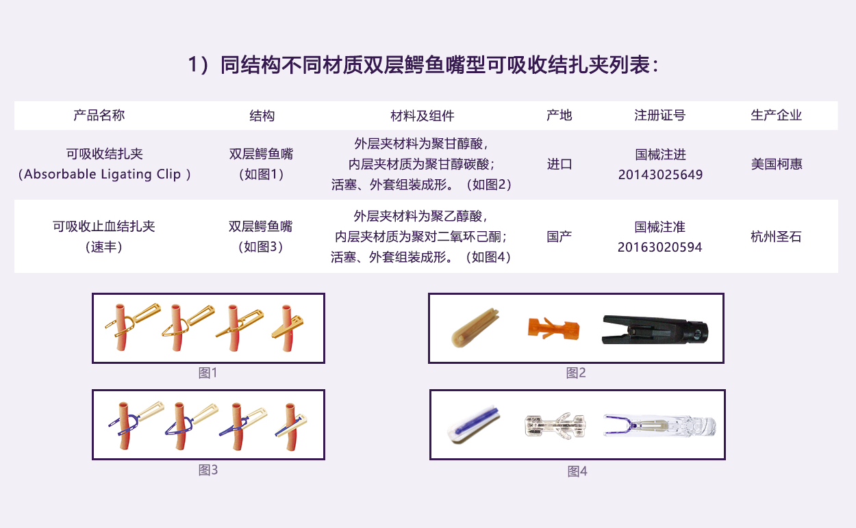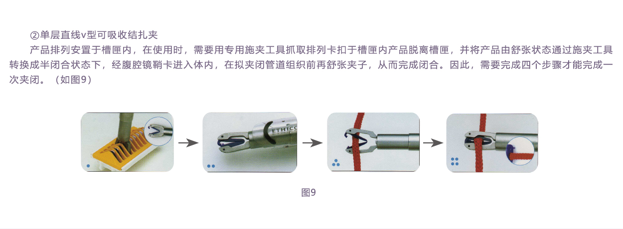 內(nèi)層夾用醫(yī)用染色劑,與進口單層V型可吸收夾顏色一致,提高其可視性。