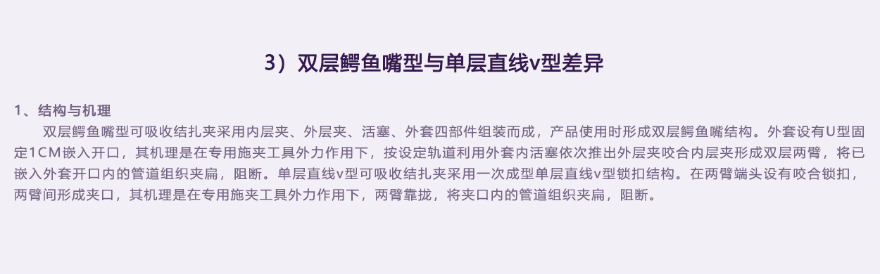 內(nèi)外層夾為雙色設(shè)計,涇渭分明。實際使用中內(nèi)外層夾配合夾閉管腔效果一目了然,避免錯誤判斷。